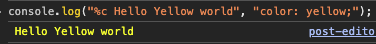 console.log("%c Hello Yellow world", "color: yellow;");