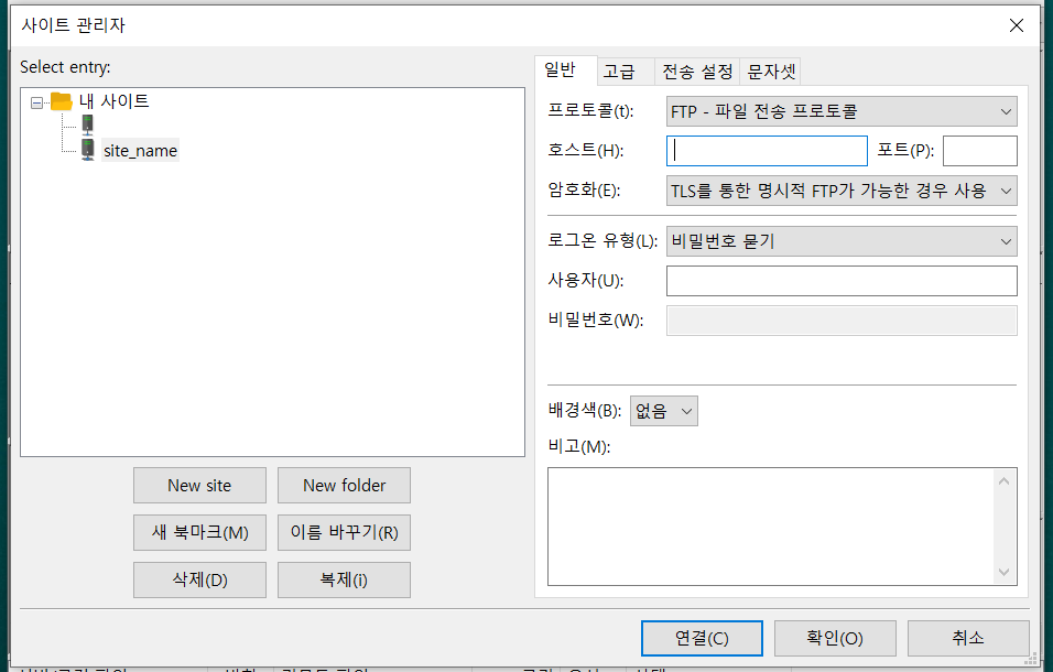 다음은 파일(F) 바로 밑에 있는 아이콘을 눌러 사이트 관리자를 열어준다.