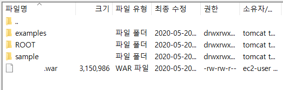 webapps에 war 파일을 업로드하면 톰캣이 알아서 자동으로 압축을 해제하고, 서버에 배포까지 해준다.