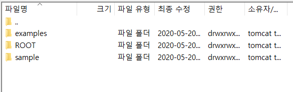 나는 여기서 webapps 폴더를 찾았다. 위의 경로를 그대로 파일질라에 붙여 준다.