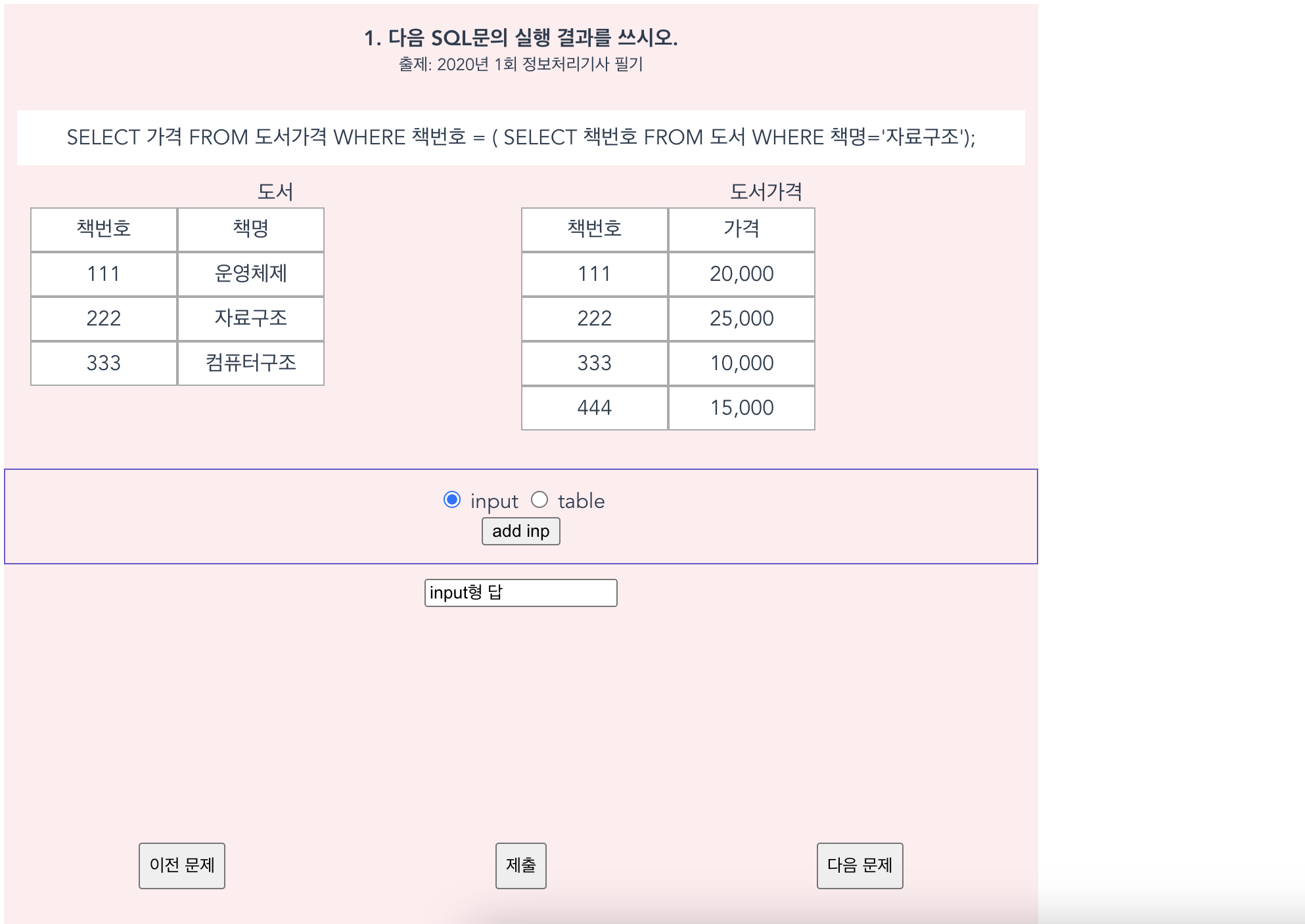 정보처리기사 자격증을 공부할 때 SQL 문제들을 연습할 곳이 너무 없었다.
