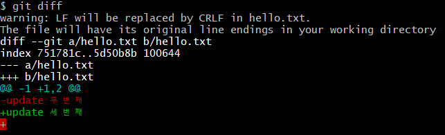 마찬가지로 'update 세번째'라는 문자가 추가되었다는 뜻